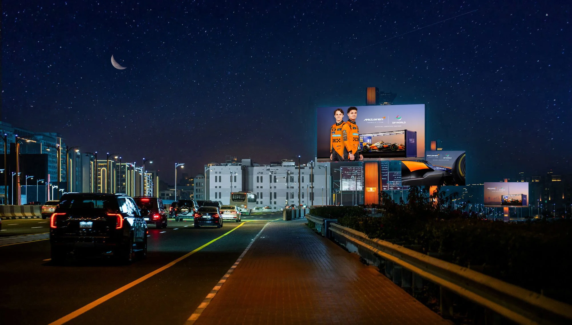 DP World extended this narrative into one of the most exclusive advertising real estates in the world: The Royals, located at the entrance and exit to Dubai's iconic Palm Jumeirah. Typically reserved for high-end luxury brands, this premium media placement elevated the DP World x McLaren partnership to a new level.
